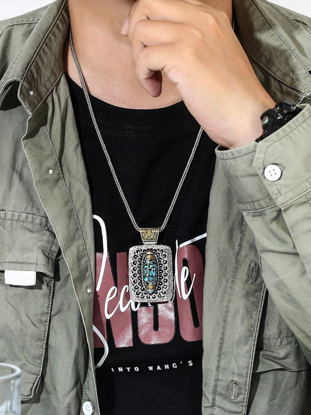 Women's & Men's & Dynasty Natural Turquoise Rotating Tibet Beads Sterling Sier Pendant Necklaces