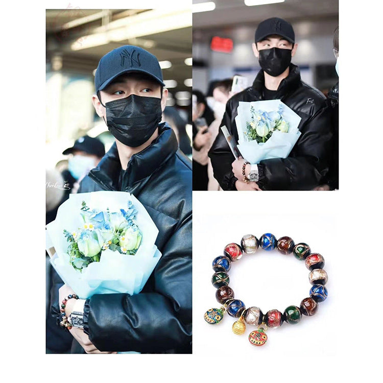 Women's & Men's & Fragrant Gray Glazed Colorful Swallowing Gold Bracelets