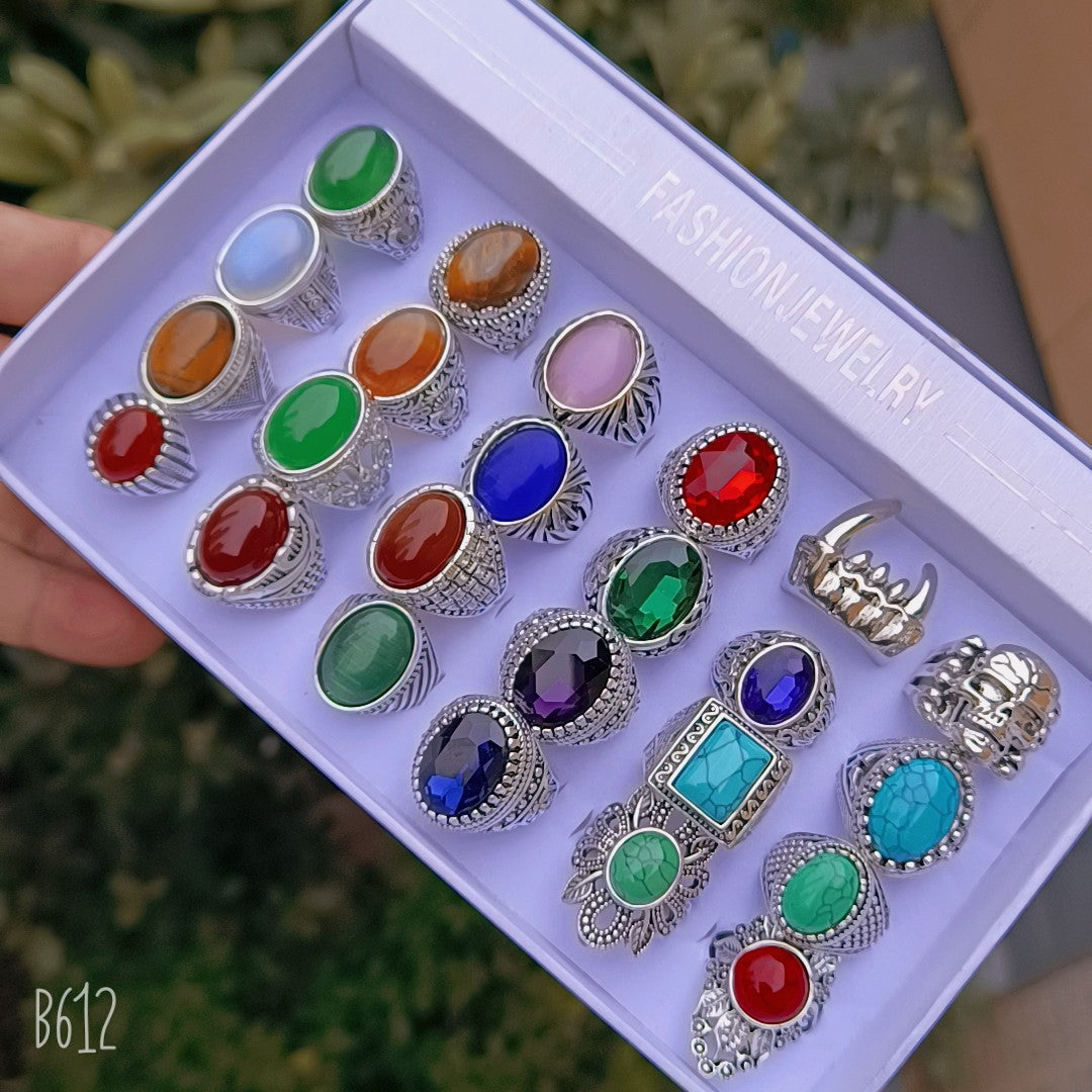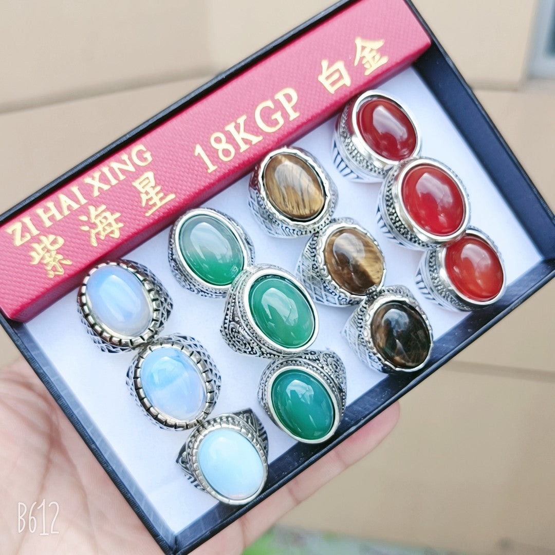 Women's Shi Man Inlaid Sapphire Blue Zircon Rings