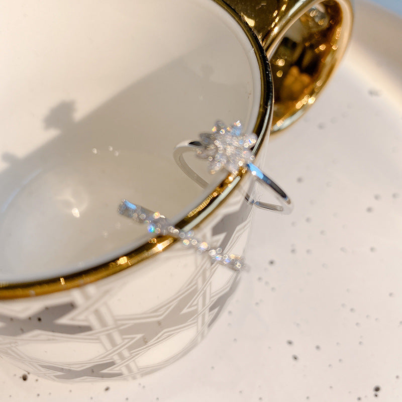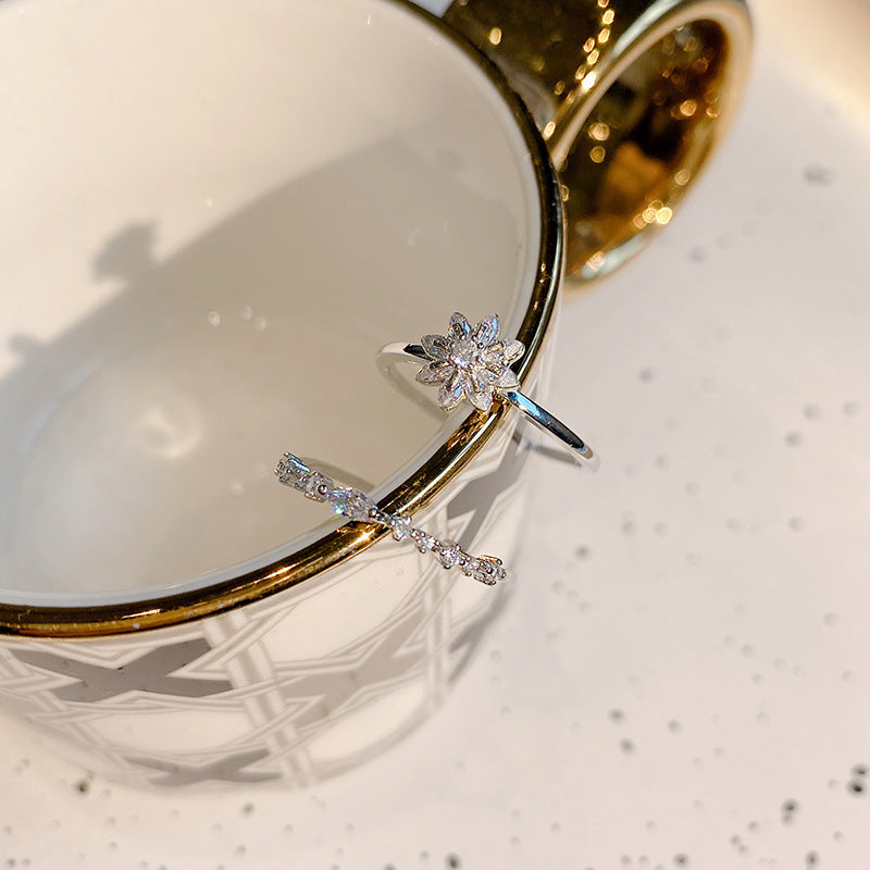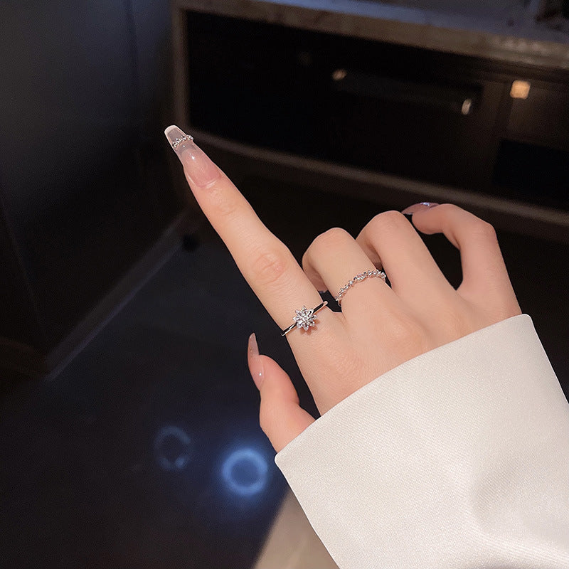 Women's Minority Design Sense Refined Zircon Flower Two-piece Set Rings