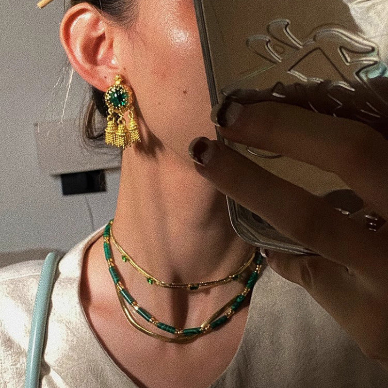 Women's Niche Twin Exquisite Gold-plated Inlaid Gemstone Fashion Retro Distressed Necklaces