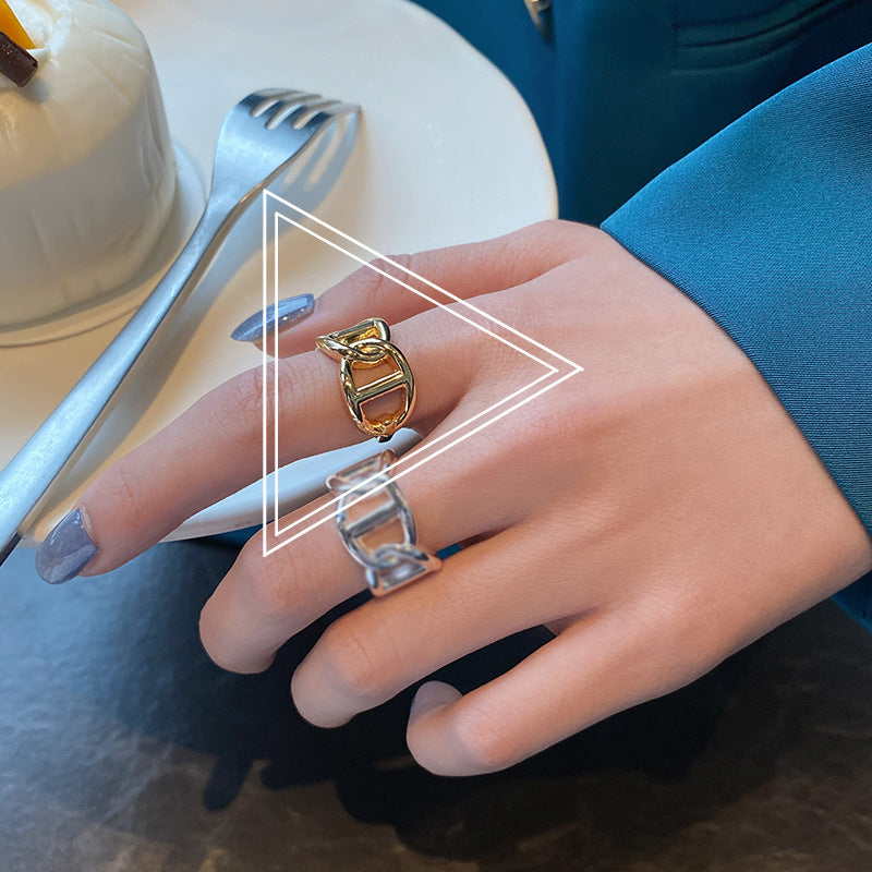 Women's Open Hollow Simple Pig Nose Golden Index Rings
