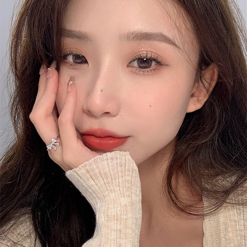Women's Opening Adjustable Bow Sier Zircon Sweet Rings
