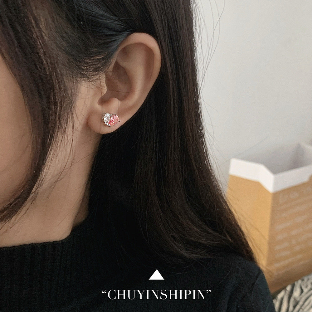 Women's Ornament Sterling Sier Pink Diamond Love Heart Sweet Earrings
