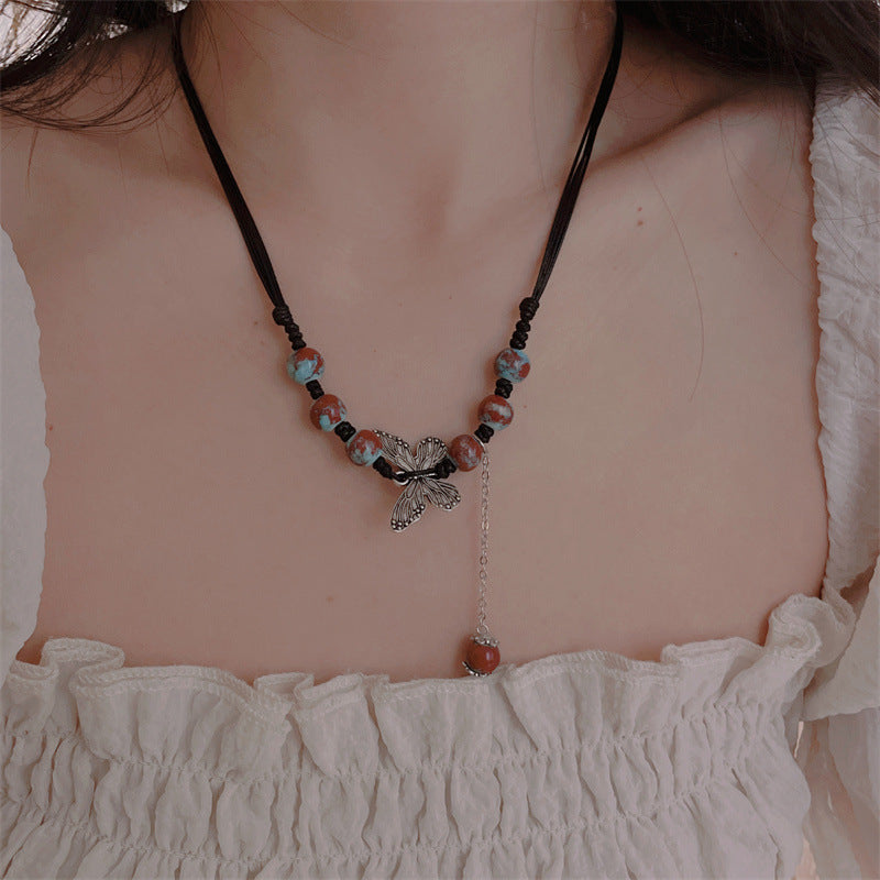 Women's Personality Butterfly Ethnic Graceful National Fashion Red Necklaces