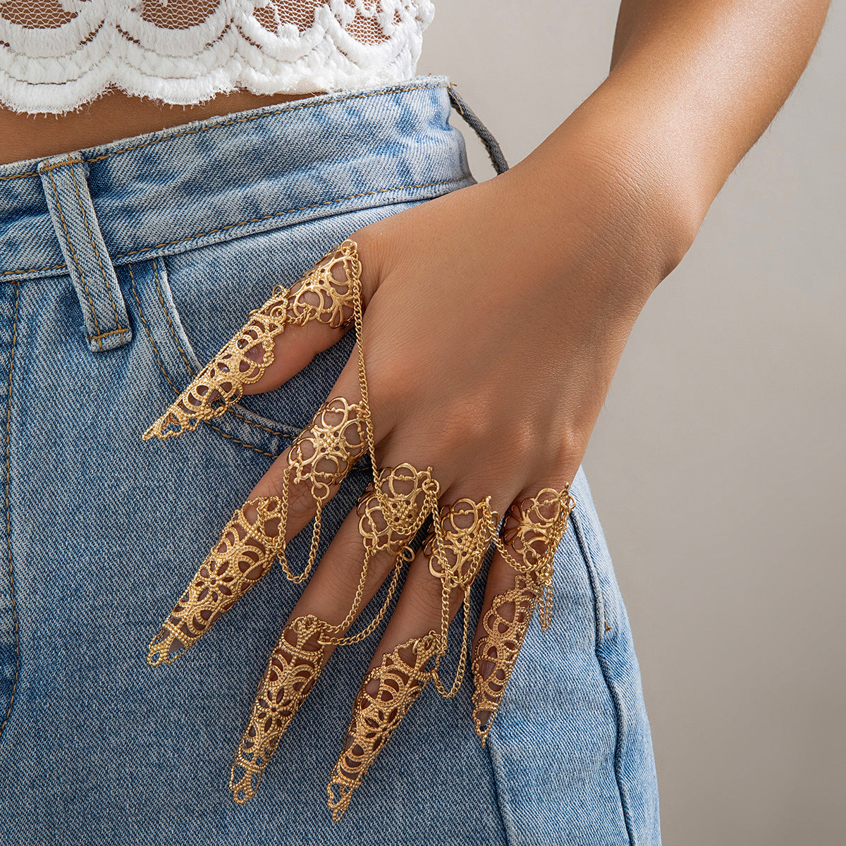 Women's Personality Punk Vintage Crown Chain Dark Hollow Pattern Rings