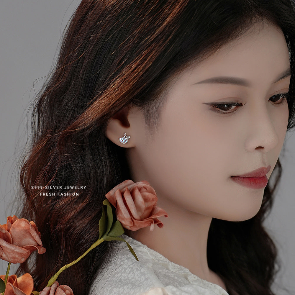 Women's Pure Sier Colorful Moonstone Ginkgo Leaf For Earrings