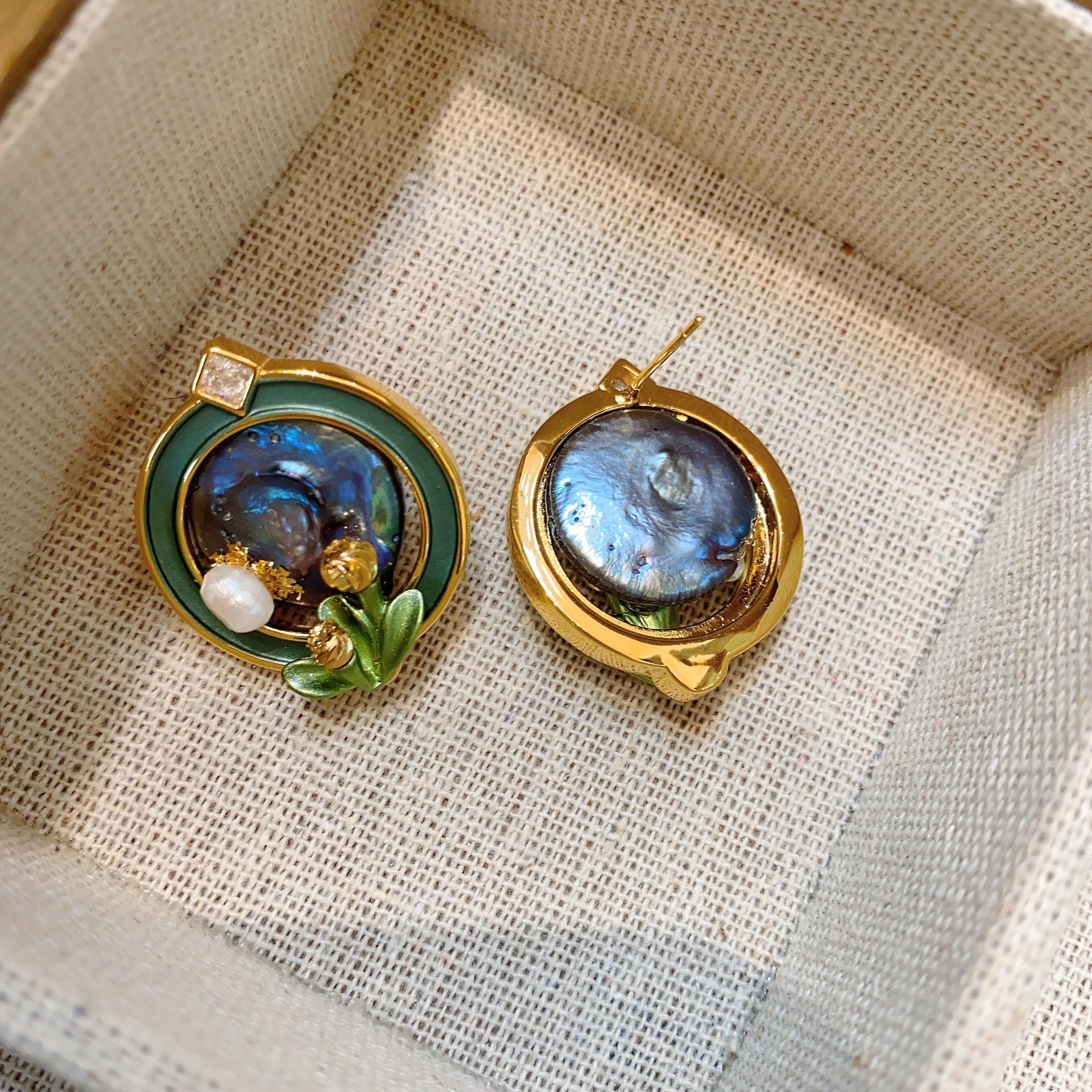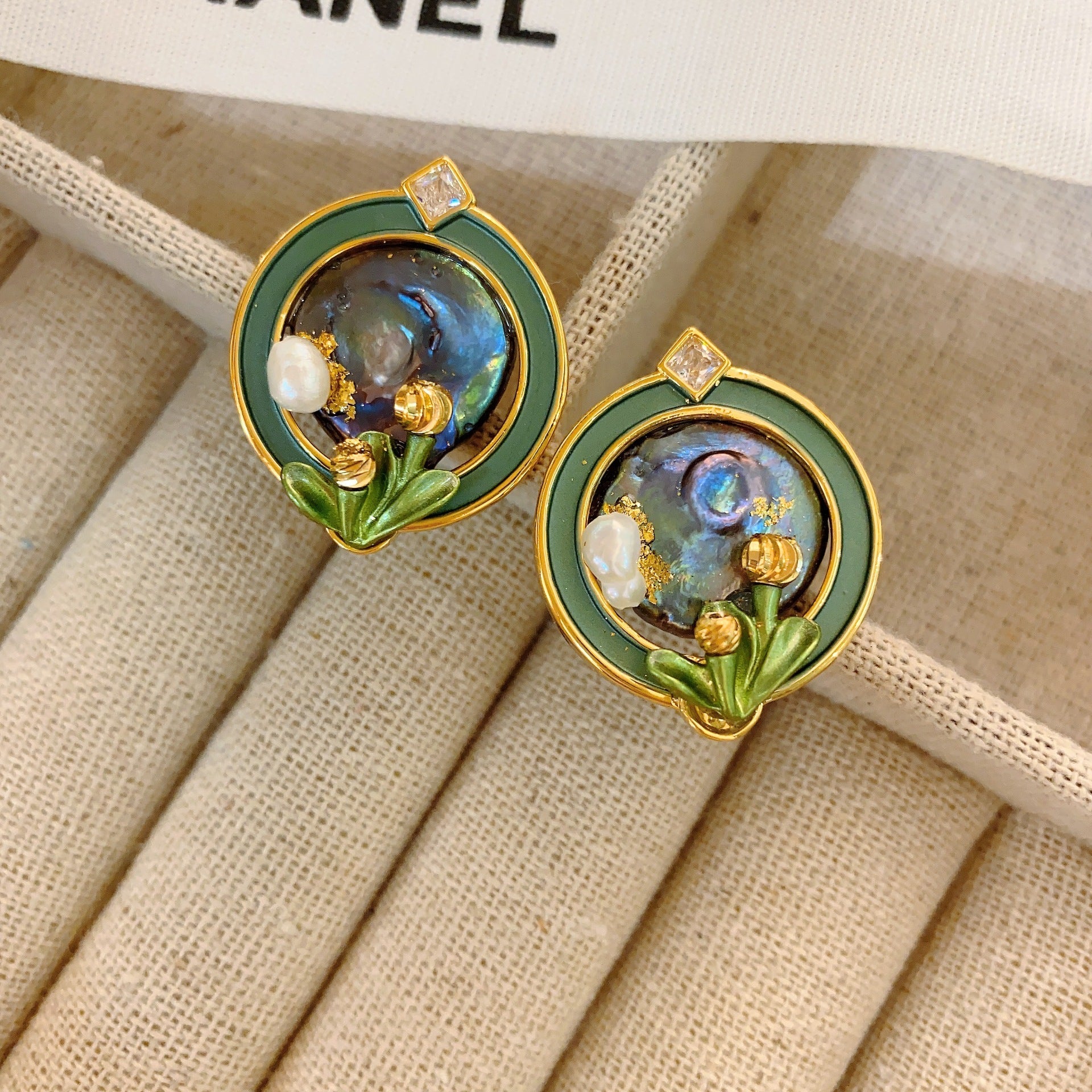 Women's Retro Enamel Antique French Oil Painting Earrings