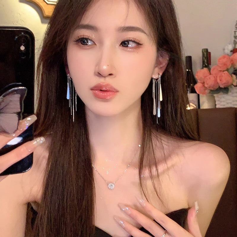 Women's Score For Lens Feeling Long Fringe Earrings