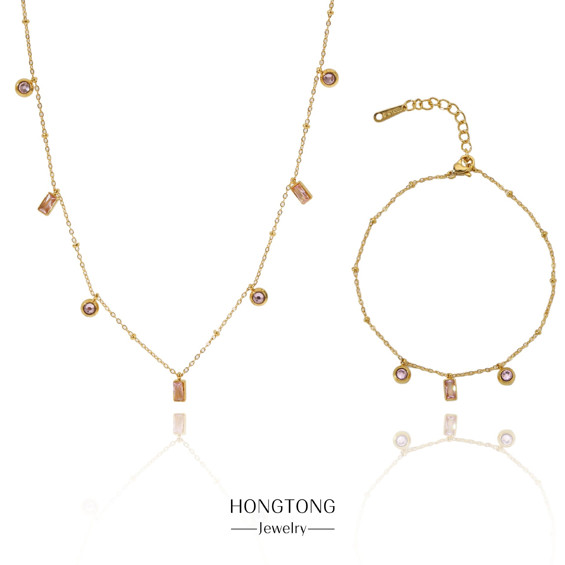 Women's Sense Niche Pink Zircon Pendant Simple Necklaces