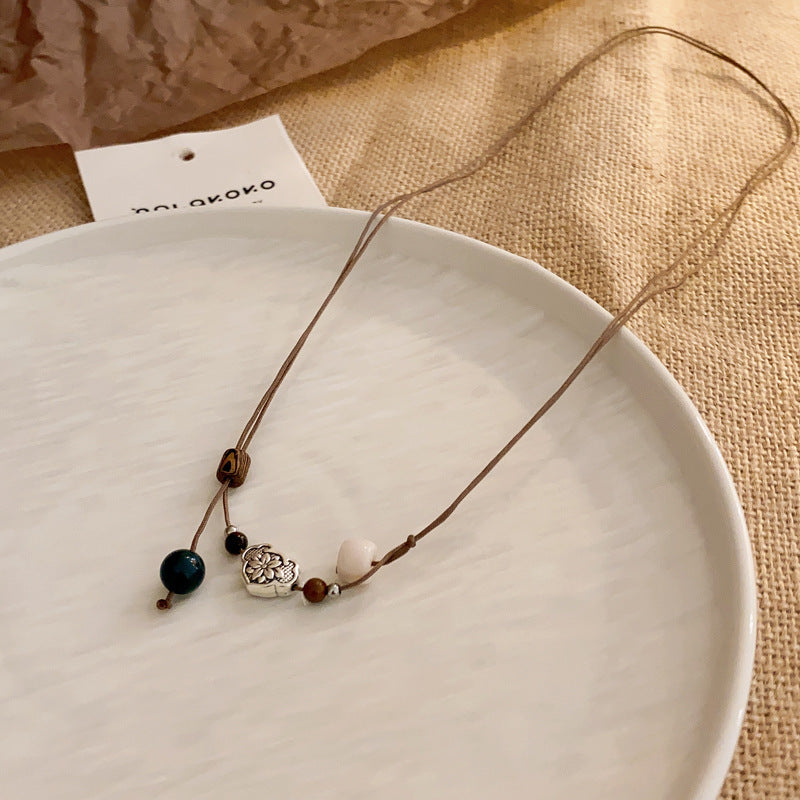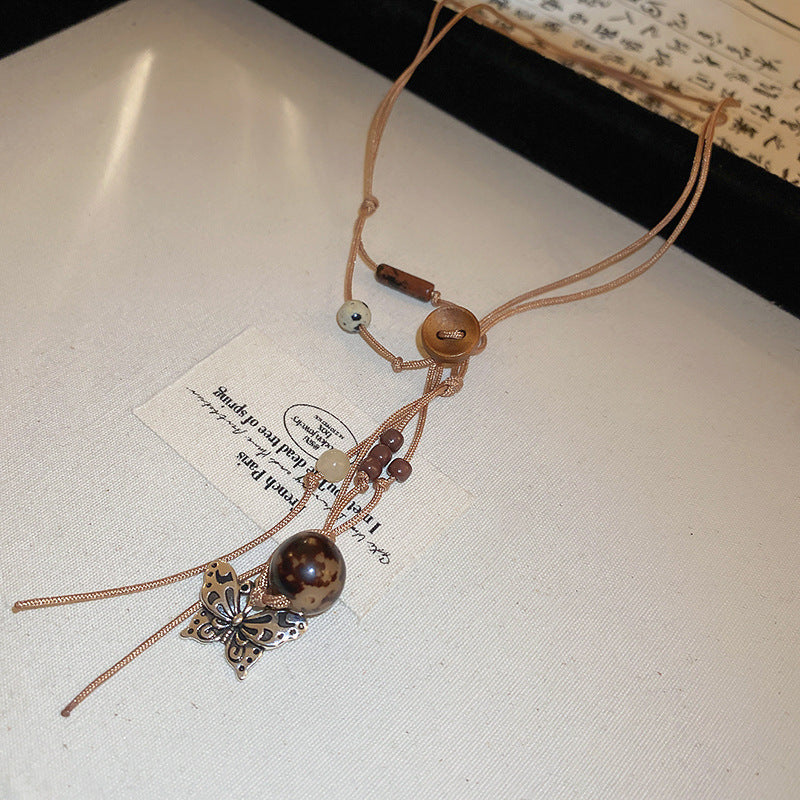 Women's Series Tigereye Butterfly Chinese Retro Beaded Sweater Necklaces