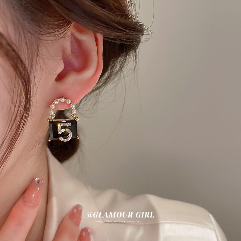 Women's Sier Needle Pearl Diamond Letters Handbag Fashion Earrings