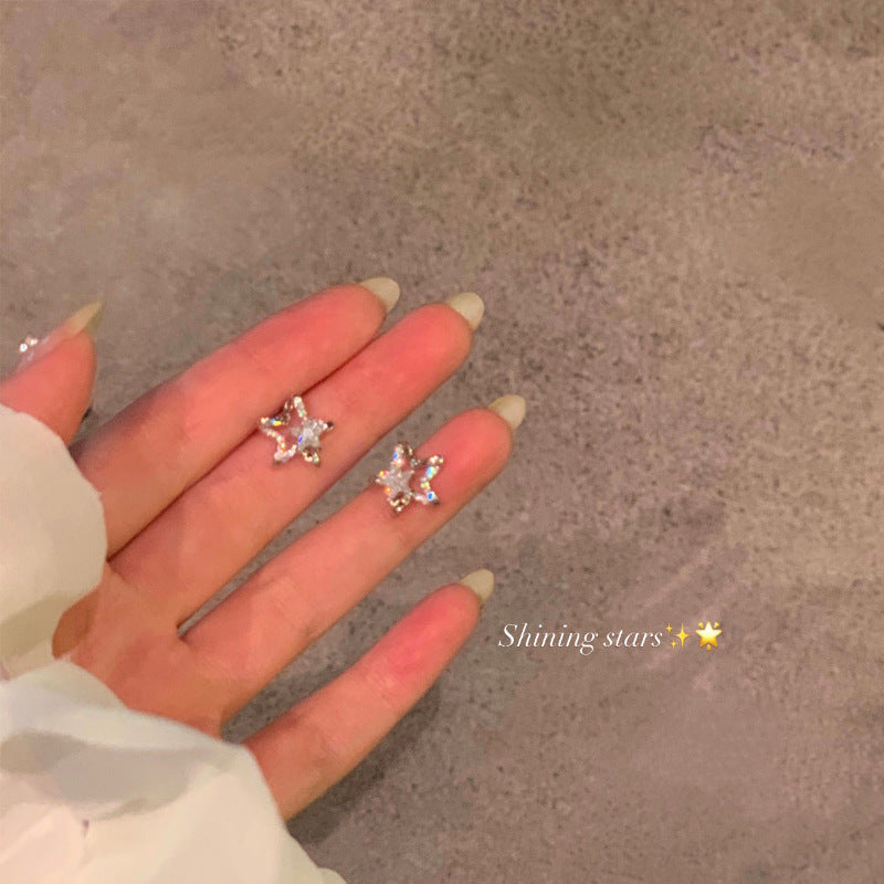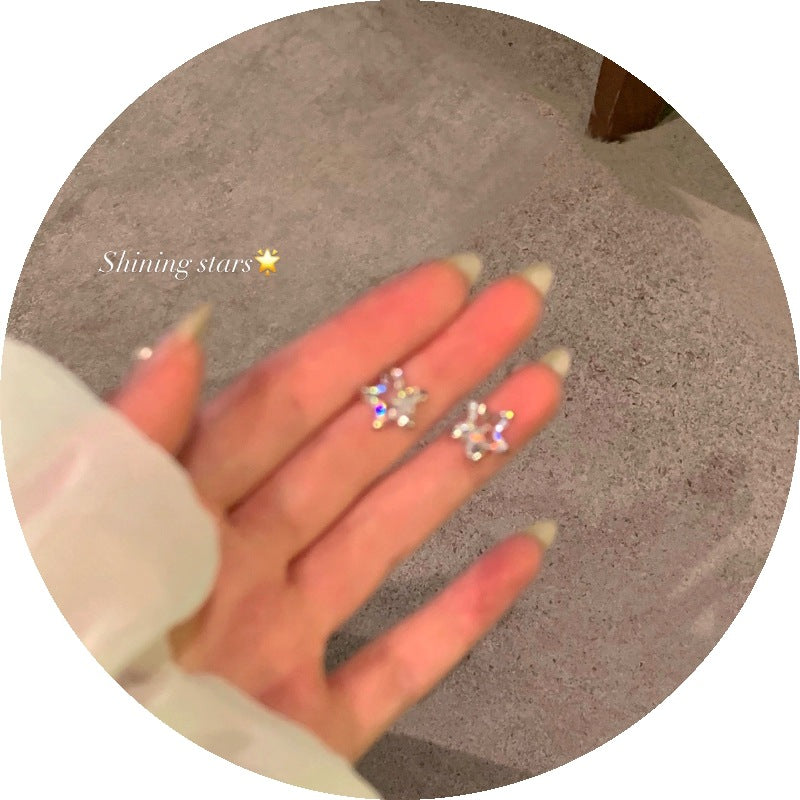 Women's Sier Super Flash Zircon Western Style French High Earrings