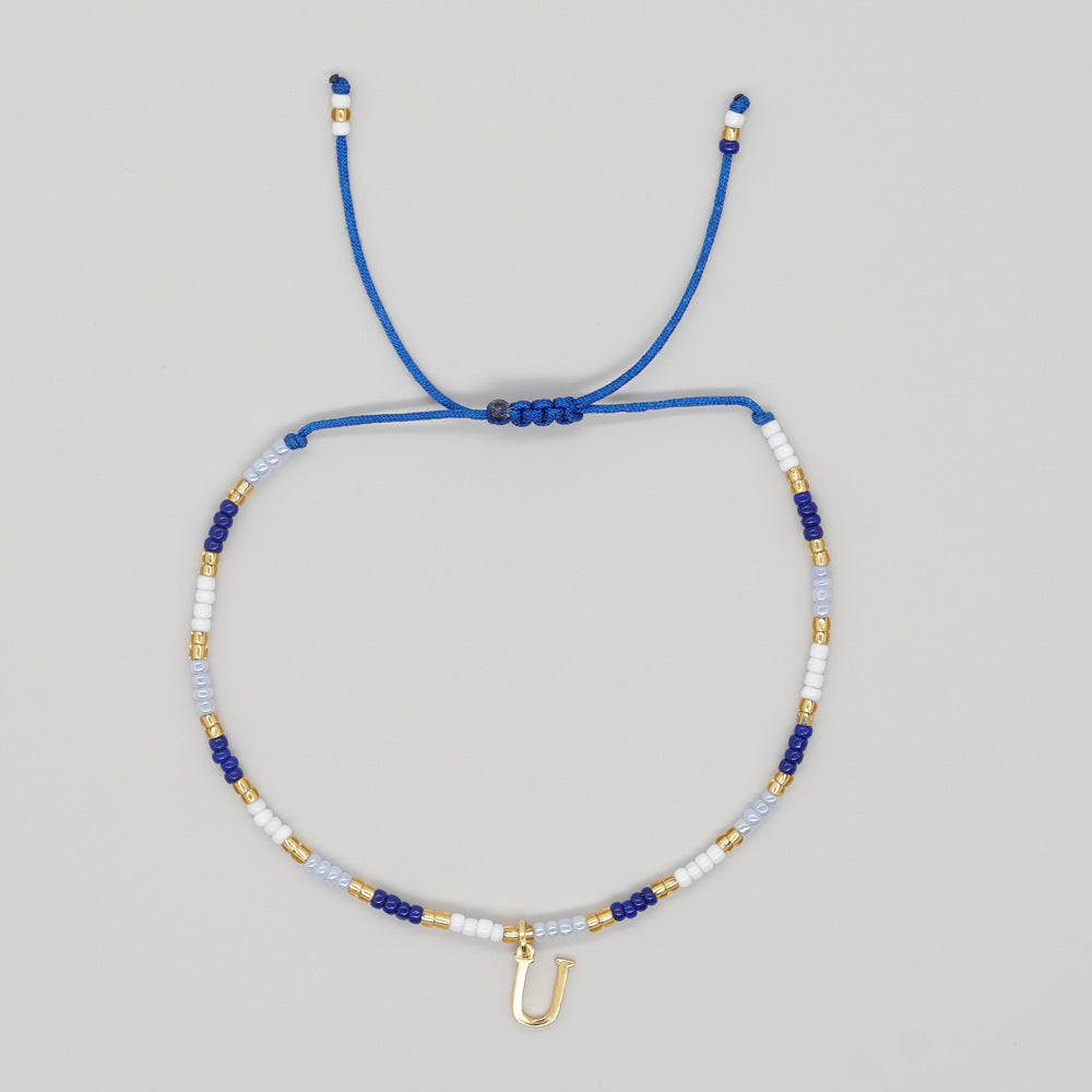 Women's Simple Style Contrast Color Bead English Letters Handmade Bracelets