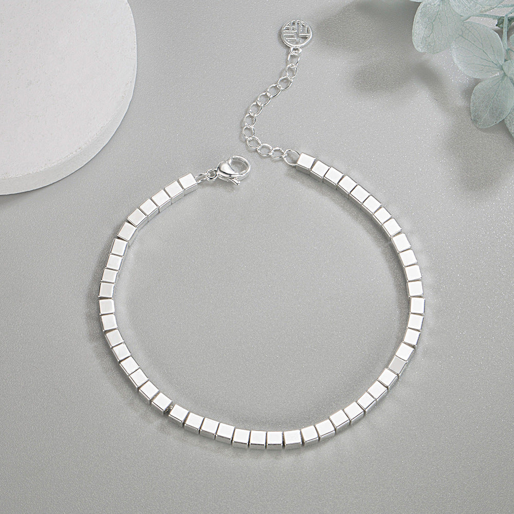 Women's Small Square Geometric Broken Sier Couple Bracelets