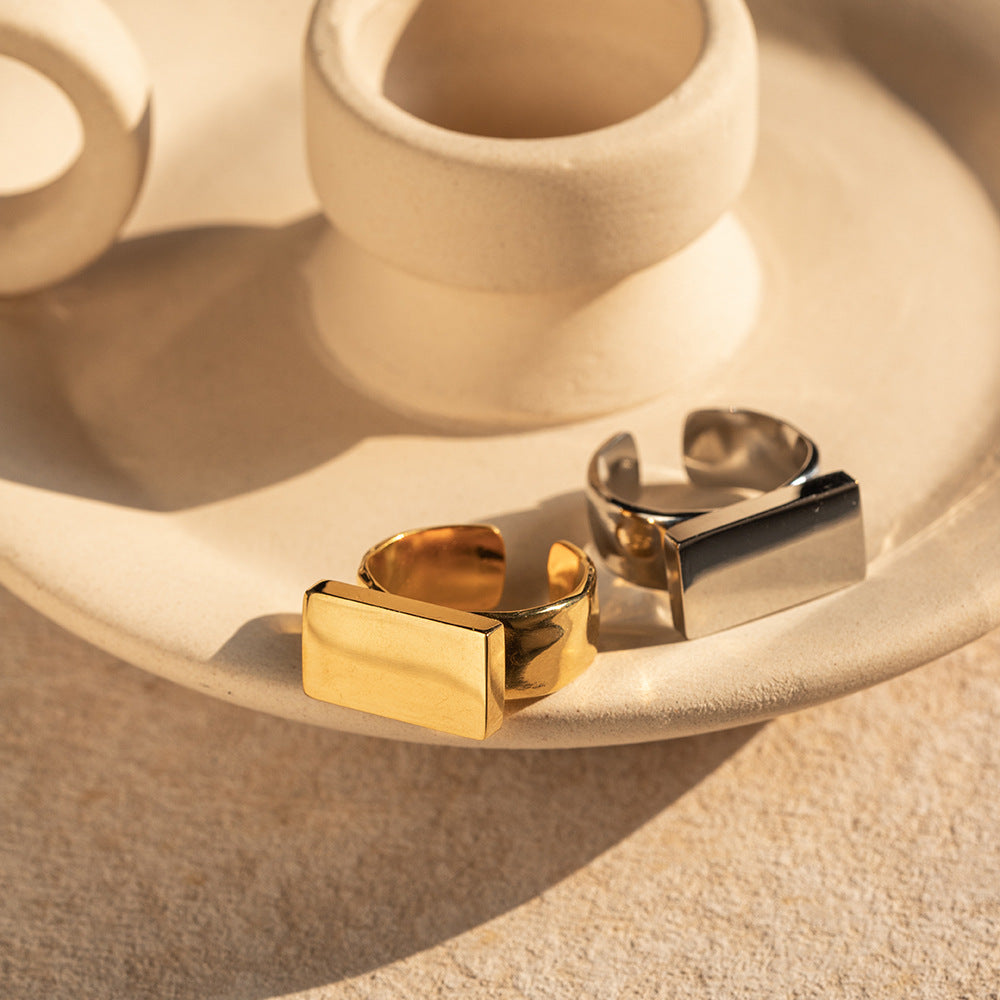 Women's Stainless Steel Long Block Fashion Jewelry Rings