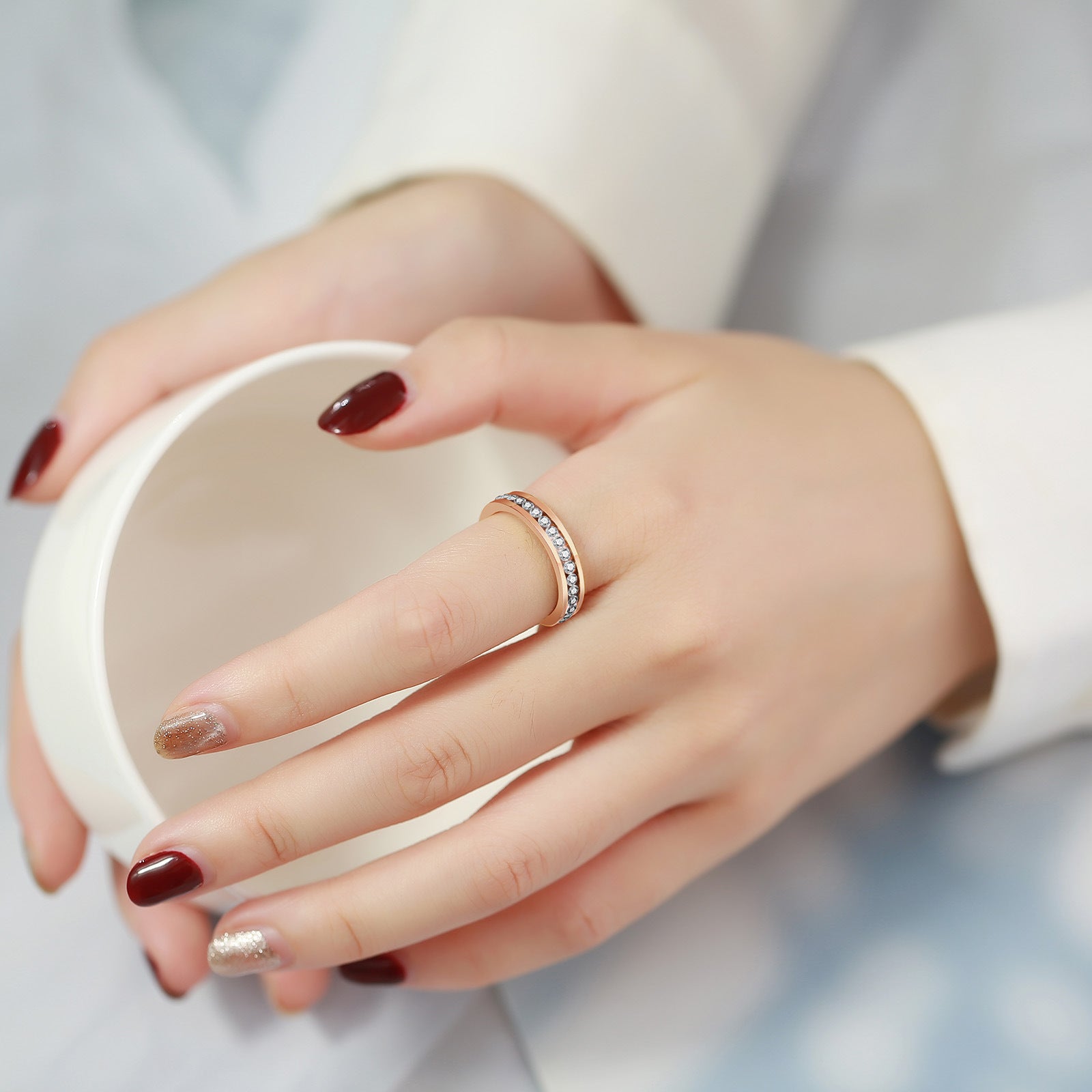 Women's Stainless Steel Rose Gold Single Row Rhinestone Bracelets
