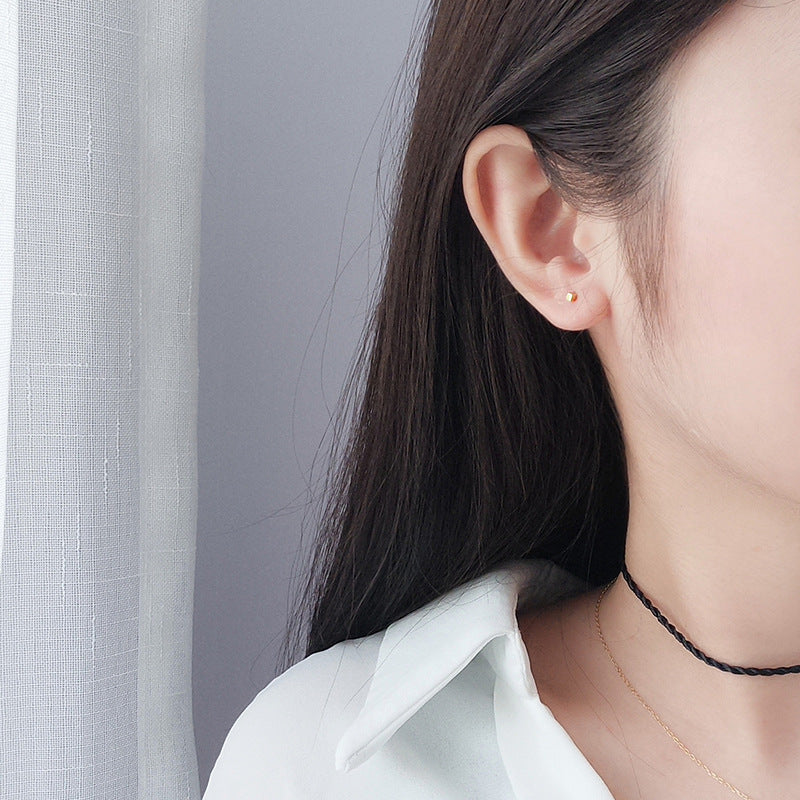 Women's Sterling Sier Gold Square Simple Elegant Mini Earrings