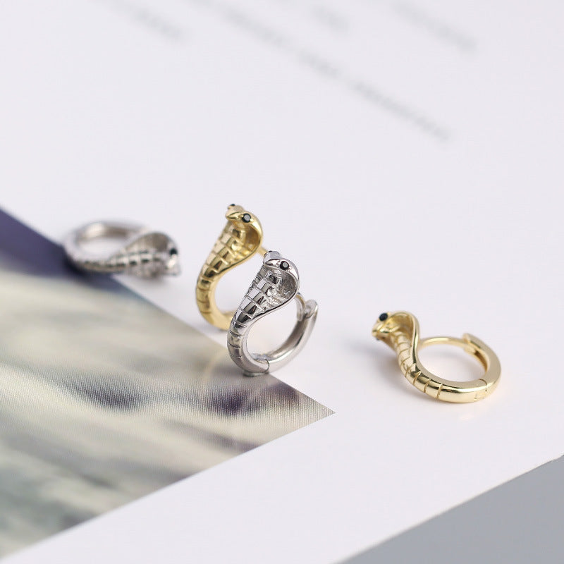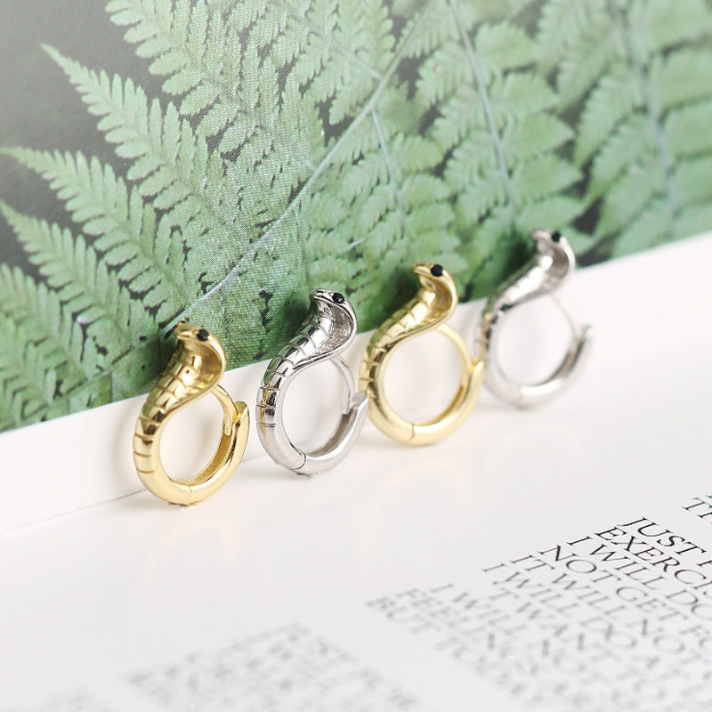 Women's Sterling Sier Metallic Eyes King Snake Earrings
