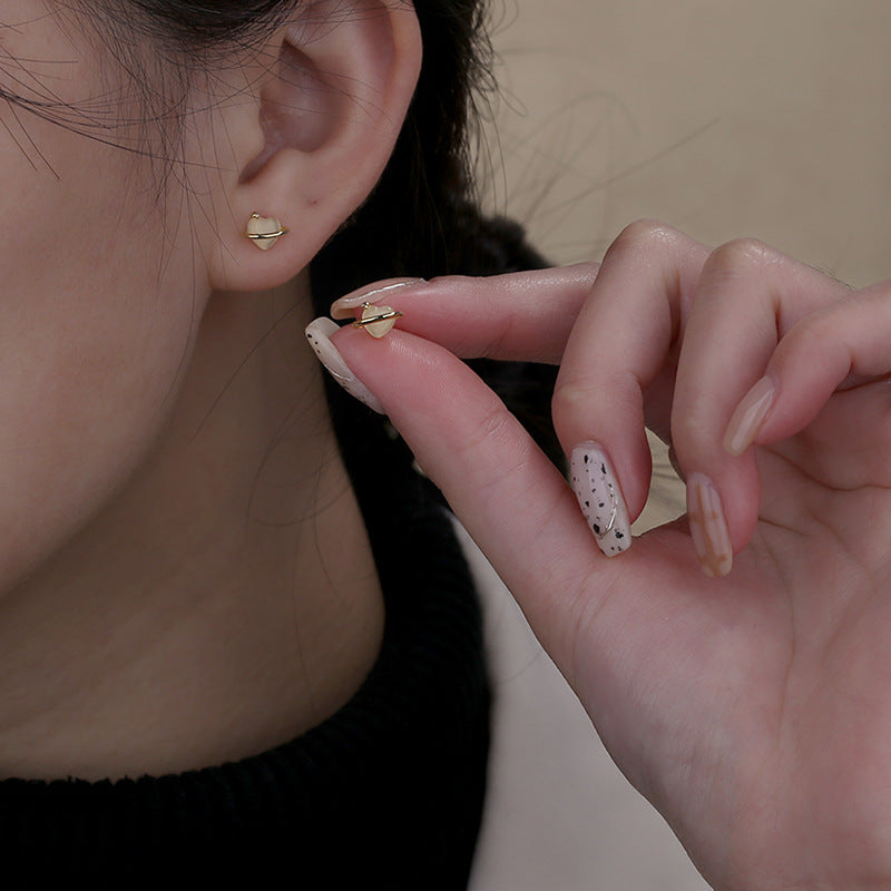 Women's Sterling Sier Needle Heart-shaped For Opal Earrings