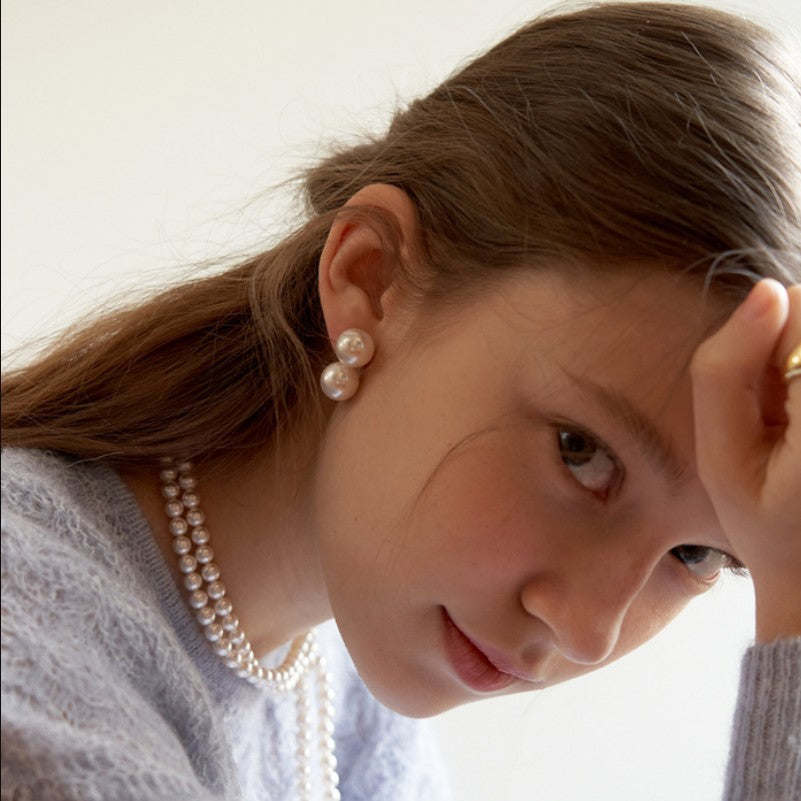 Women's Style Chic Elegant Double Pearl Detachable Sier Pin Earrings