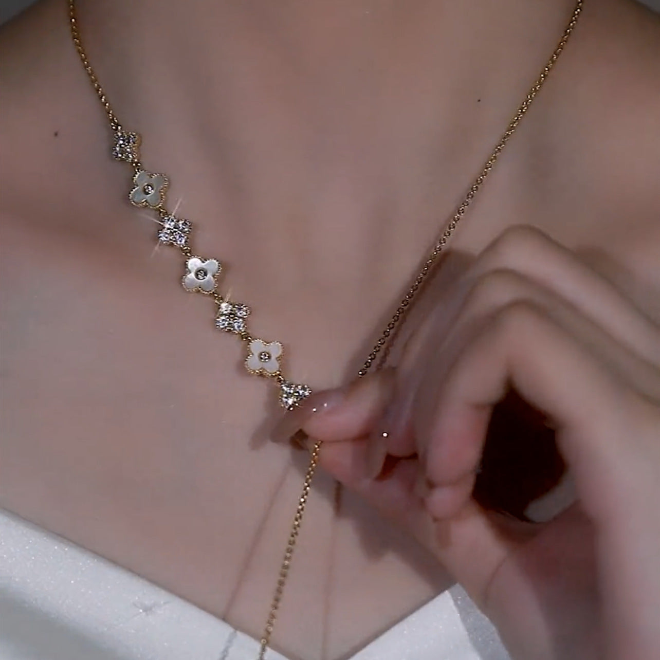 Zircon Exquisite Light Luxury Natural Fritillary Pull Clover Necklaces