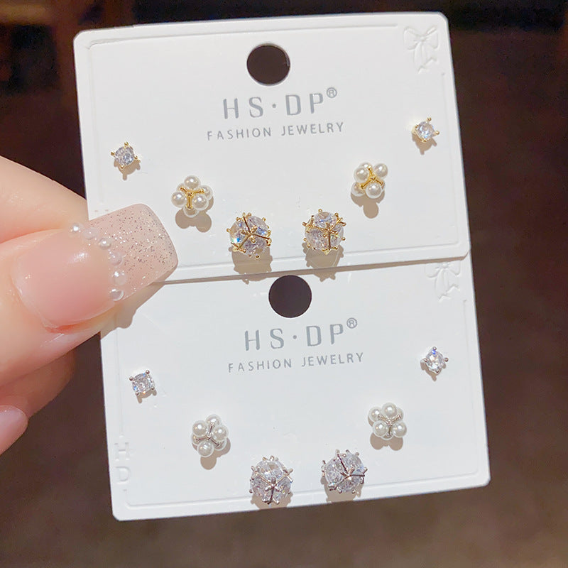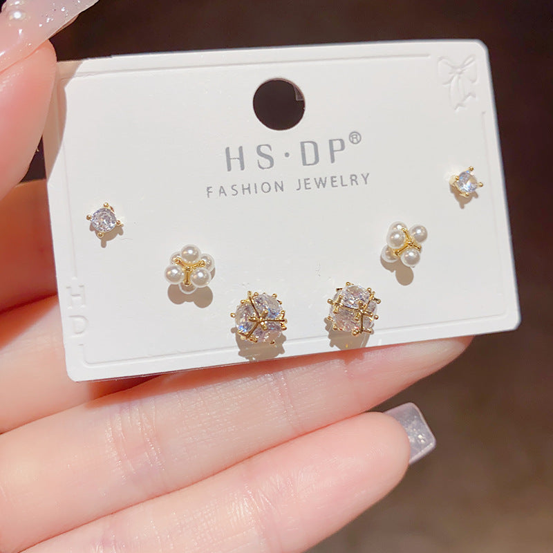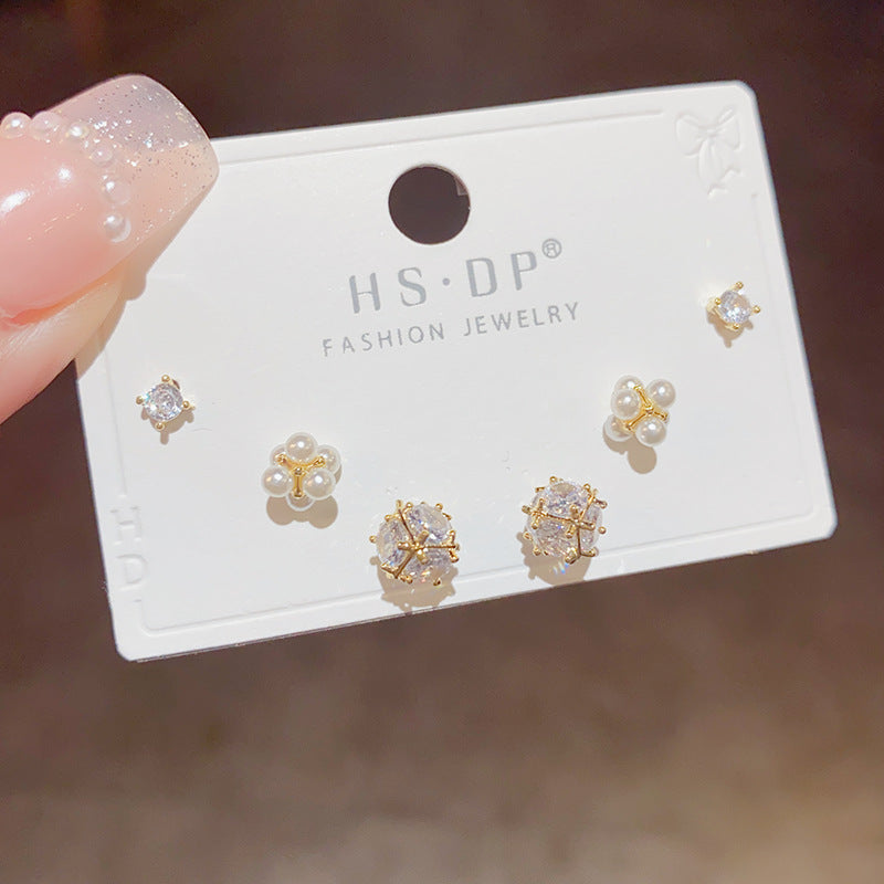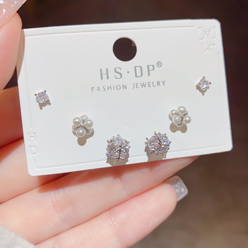 Zircon Pearl Combination Sier Needle High Earrings